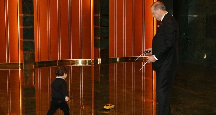 Cumhurbaşkanı Recep Tayyip Erdoğan, Cumhurbaşkanlığı Külliyesi'nde torunuyla uzaktan kumandalı araba ile oynarken çekilen fotoğrafını resmi Twitter hesabından paylaştı. Erdoğan, "Çocuklarımızla birlikte geçirdiğimiz her saniye, hayatımıza, dünyamıza değer katar." mesajına yer verdi.