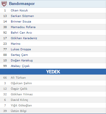 Yapılan son antrenmanda arka adalesinden sakatlanan yıldız futbolcuyu Teknik Direktör Mustafa Denizli Bandırma maçın riske etmeyerek yedek soyundurdu.