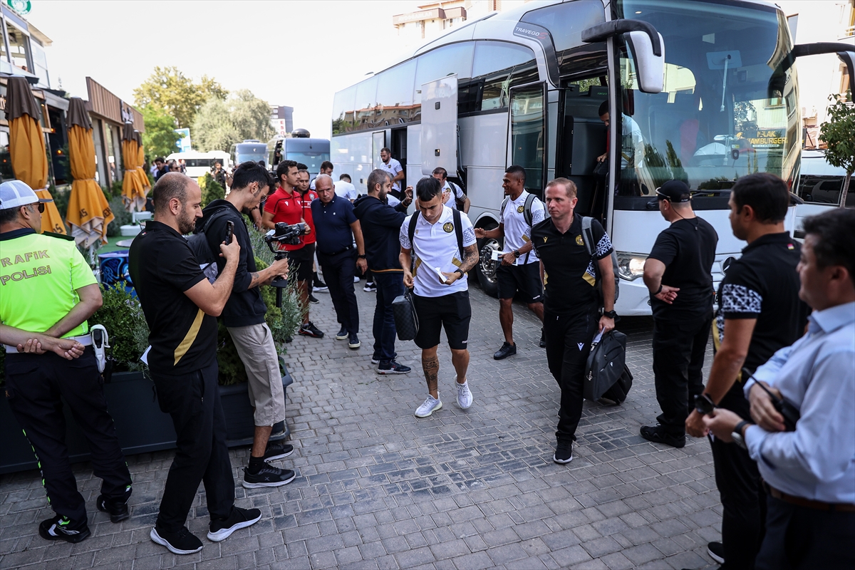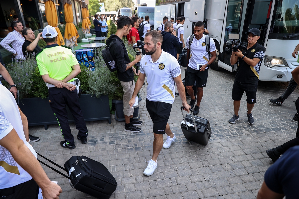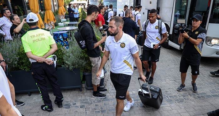 Kafileyi taşıyan otobüs, daha sonra yoğun güvenlik önlemleri eşliğinde takımın konaklayacağı otele geldi.