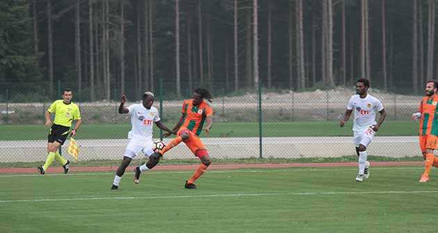 Düzce’nin Topuk Yaylası’nda ki kampının son gününde Alanyaspor ile karşı karşıya gelen Eskişehirspor eksiklerini görme fırsatı yakaladı. Siyah Kırmızılı ekip Süper Lig’in yeni ekibi Alanyaspor karşısında ilk yarıda vasat bir performans sergiledi. Daha çok orta saha mücadelesi halinde geçen ilk yarıdan gol sesi çıkmadı ve ekipler soyunma odasına golsüz eşitlikle girdi.