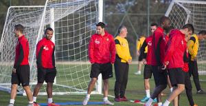 Eskişehir Vali Hanefi Demirkol Tesislerinde, teknik direktör İsmail Kartal yönetiminde gerçekleştirilen antrenmanda ısınma hareketlerinin ardından, basına kapalı olarak taktik çalışma yapıldı.