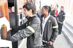 Bugün Akhisar Belediyespor ile kupada grup maçına çıkacak olan Eskişehirspor, cumartesi günü ise Süper Lig’de Galatasaray ile karşı karşıya gelecek. 4 gün içinde 2 karşılaşma oynayacak olan Kırmızı Şimşekler bu zorlu karşılaşmalara tam kadro gitti. Eskişehirspor’da sadece A2 maçında mücadele eden Deniz Topçu kafilede yer almazken, futbolcuların keyfi bir hayli yerindeydi.