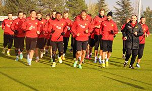 Ersun Yanal antrenmanın ilk dakikalarında yan sahada yöneticiler ile ayaküstü sohbet etti. Antrenman sahasının zemini konusunda yöneticilerle fikir alışverişi yapan Yanal, ilerleyen dakikalarda takımın başına geçti. Antrenmanda sportif sakatlıkları süren Servet, Tello ve Nuri Fatih kondisyonerler eşliğinde düz koşu yaptı. Kırmızı Şimşekler çalışmalarına bu akşam saat 18:00’de yapacağı antrenman ile devam edecek. (SS)
