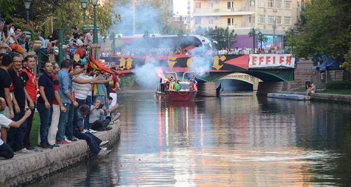 Eskişehirspor, Porsuk Çayı üzerinde kurulan platformda binlerce taraftarı ile bir araya geldi.