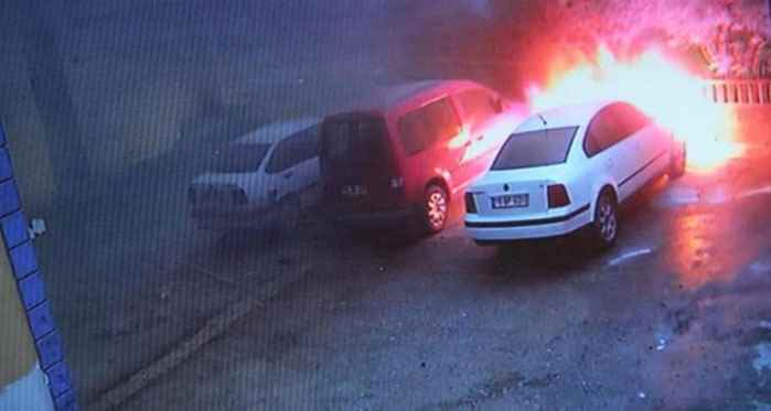 Yaşanan o anlar ise apartmanın güvenlik kamerasına saniye saniye yansıdı. Biranda alev topuna aracın yandığını sabah namazından dönen bir vatandaşın görmesi üzerine apartman sakinleri aracı söndürmek için seferber oldu. Otomobil sahibi Aybakır ve apartman sakinlerinin yangın tüpleri ile müdahale ettiği alevleri söndürmek başarılı olamadı. İhbar üzerine olay yerine gelen itfaiye ekipleri yangını diğer araçlara sıçramadan söndürdü.