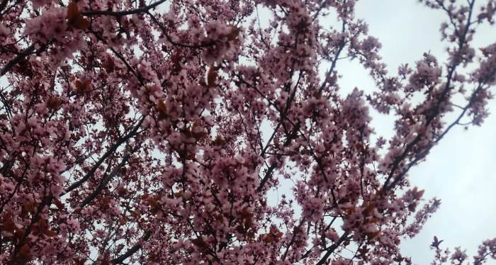 Fotoğrafta görülen ağaç, halk arasında süs eriği olarak bilinen Prunus cerasifera türü. Yapraklanmadan önce çiçek açmasıyla bilinen bu tür, özellikle kent peyzajında sıkça tercih ediliyor.