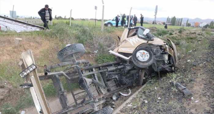 Afyonkarahisar’da hemzemin geçitten geçmeye çalışan kamyonete trenin çarpması sonucu 1 kişi yaralanırken, olayda kamyonetin paramparça olması ise yaşanan kazanın şiddetini gözler önüne serdi