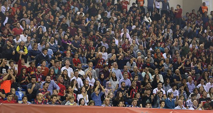 Tahincioğlu Basketbol Süper Ligi’nin 3’üncü haftasında Eskişehir Basket, Anadolu Üniversitesi İki Eylül Spor Salonu’nda ligin zorlu ekiplerinden Anadolu Efes ile mücadele etti. Potanın Şimşekleri karşılaşmayı 84-86’lık skorla kaybetse de parkedeki müthiş mücadele ve güzel performanstan dolayı salonu dolduran taraftarlarından tam not aldı. Eskişehir'deki basketbol izleyici sayısı her geçen gün artarken son mücadeleyi de yaklaşık 4 bin Eskişehirli tribünden takip etti. Salona adeta akın eden taraftarlar, maçın başından sonuna kadar Siyah-Kırmızılı ekibe büyük destek verdi. Aileleriyle maça gelen taraftarlar keyifli anlar yaşadı. Maçın son saniyelere kadar büyük bir çekişme içinde geçmesi tribünleri de sürekli oyunun içinde tuttu. Maç sonu, son saniyeye kadar güçlü rakibine direnen Eskişehir Basket, etkili oyunundan dolayı tribünlerin alkışını aldı.