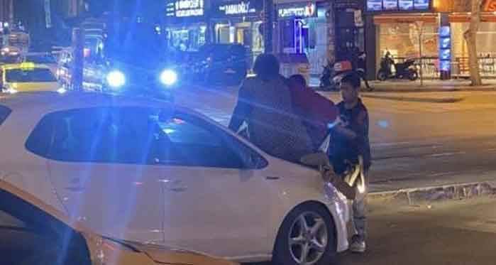 Çocukların kaputun üzerinden inmesiyle araç sürücüsü olay yerinden uzaklaştı.