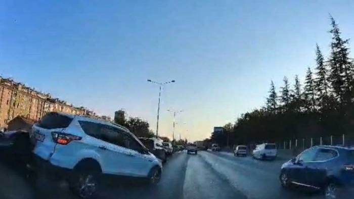 Eskişehir çevre yolunda yaşanan trafik kazası, araç içi kamera tarafından saniye saniye kaydedildi. Yavaşlayan SUV araca arkadan çarpan otomobilin çarpışma anı, yaşanan paniği gözler önüne serdi.