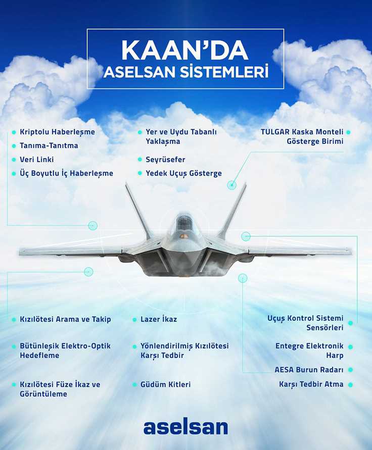 Bu kapsamda TÜBİTAK SAGE, SOM A, SOM B1, SOM B2, HGK 82, HGK 83, HGK 84, NEB, GÖKHAN, KGK 82, KGK 83, GÖKDOĞAN ve BOZDOĞAN gibi Türkiye'nin yerli ve milli füze ve silah sistemleri ile kitlerini KAAN'a entegre edecek.