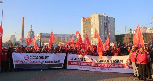 DİSK üyeleri ve işçilerin yoğun katılımı ile gerçekleşen Eskişehir'deki basın açıklamasında konuşan DİSK Genel Başkanı Arzu Çerkezoğlu, “Bir masanın etrafında 15 kişinin toplanıp milyonlarca işçinin emekçinin hakkında karar verdiği bir asgari ücret belirlenmesi süreci hak mıdır, reva mıdır, demokratik midir? Artık yeter diyoruz." dedi.