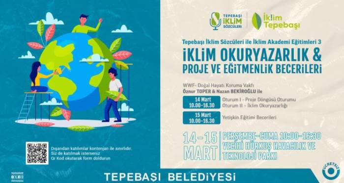 Son olarak Tepebaşı Belediyesi’nin “Tepebaşı İklim Sözcüleri” programı kapsamında, “Tepebaşı Belediyesi İklim Sözcüleri ile İklim Akademi Eğitimleri-3” düzenlenecek. Eğitim kapsamında “İklim Okuryazarlık & Proje ve Eğitmenlik Becerileri” ele alınacak. 14-15 Mart tarihlerinde düzenlenecek eğitim, WWF-Doğal Hayatı Koruma Vakfı’ndan Öznur Toper ve Nazan Bekiroğlu’nun katılımıyla gerçekleşecek.