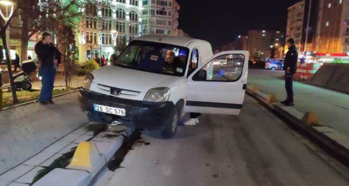Eskişehir'de bir araç, sürücüsünün direksiyon hakimiyetini kaybetmesi sonucu yaya kaldırımına çıktı ve bir taş dubaya çarparak sıkıştı. Kazadan dolayı trafik yaklaşık 30 dakika boyunca durdu.