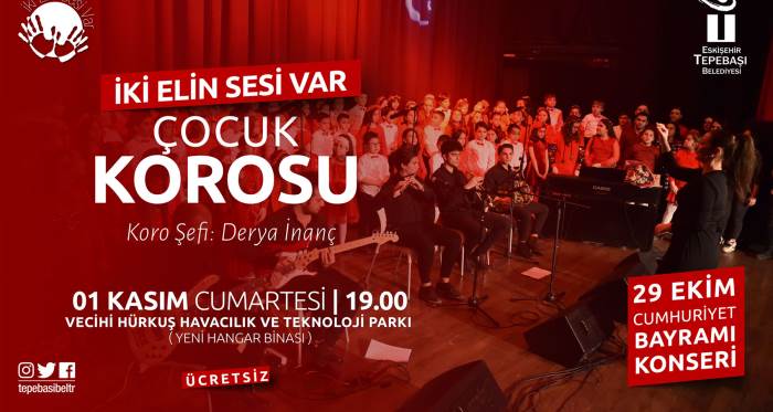 Tepebaşı Belediyesi’nin İki Elin Sesi Var Çocuk Korosu, 29 Ekim Cumhuriyet Bayramı dolayısıyla Eskişehirlilerle buluşuyor. Elde ettikleri başarılarla adını Türkiye çapında duyuran korolar, coşku dolu bir konserle Cumhuriyet’i kutlayacak.