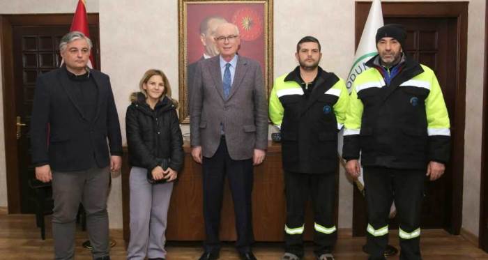 Olayı öğrenen Odunpazarı Belediye Başkanı Kazım Kurt, çantanın sahibi Esra Çelik, Temizlik İşleri Personeli Okan Arslan ve ekip arkadaşlarını makamında ağırladı. Temizlik İşleri personeline teşekkür eden Başkan Kurt, “Her zaman böyle olun. Odunpazarı Belediyesi çalışanlarının dürüstlüğüne, onuruna hiç kimsenin bir şey deme şansı yok. Bugün, bunu bir kez daha ispat ettiniz. Tekrar kutluyorum sizi. Müdüre de teşekkür ediyorum. Doğru iş yapalım. Biz vatandaşımızın rahat etmesi için varız. Bu da onun küçük bir parçası”dedi.