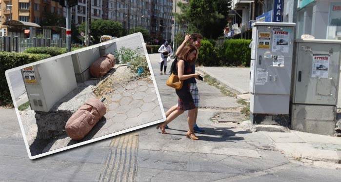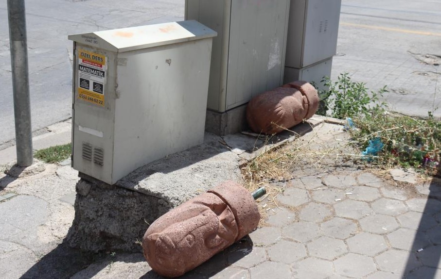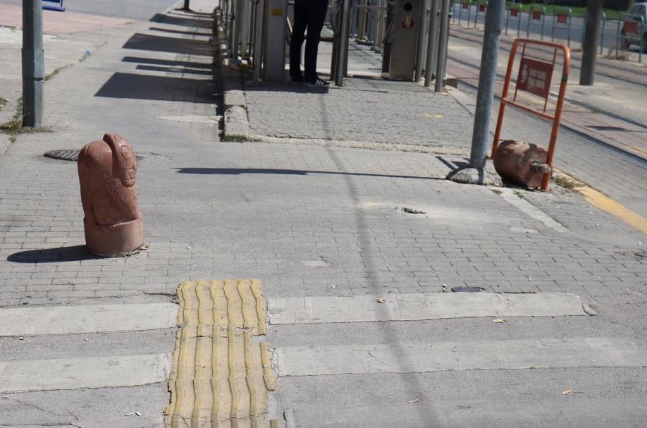 Eskişehir’de araçların geçişini engellemek için yapılan figürlü beton dubalar kimliği belirsiz kişilerce kırıldı.