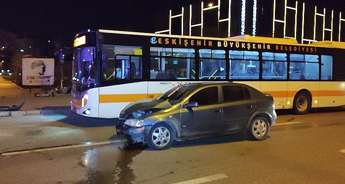 Eskişehir'de meydana gelen trafik kazasında belediye otobüsü ile otomobil çarpıştı. Kaza sonrası bir kişi yaralandı.