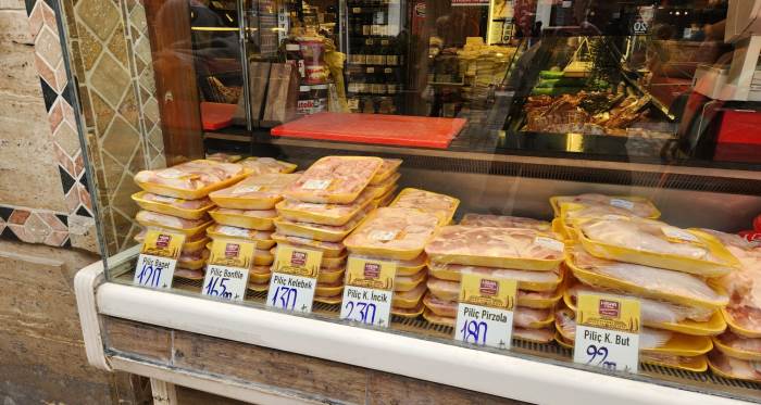 Kent merkezindeki kasaplarda satışa sunulan tavuk ürünleri, yükselen maliyetlerin etkisini gösteriyor. Tezgâhta dikkat çeken fiyatlar şöyle: