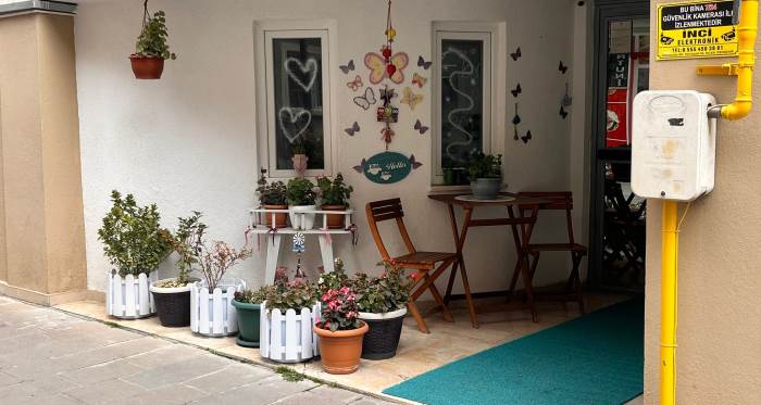 Eskişehir’de bir apartmanın girişi, özenle yapılan süslemeleriyle görenlerin dikkatini çekti. Çiçeklerle donatılan alan, küçük masa ve sandalyeler, duvar süsleri ve renkli detaylarla adeta küçük bir dinlenme köşesine dönüştürüldü. Apartman girişinde saksı çiçekleri, asılı bitkiler, kelebek figürleri ve dekoratif süsler yer aldı. Düzenli ve temiz görünümüyle öne çıkan giriş alanı, apartman sakinlerinin ortak alanlara verdiği önemi gözler önüne serdi.