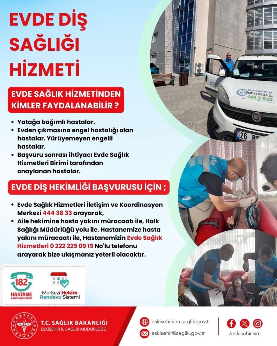 Eskişehir İl Sağlık Müdürlüğü, yatağa bağımlı ve hareket kısıtlılığı olan bireyler için evde diş sağlığı hizmeti sunarak, ağız ve diş sağlığının yaşam kalitesini artırmasına yardımcı oluyor.