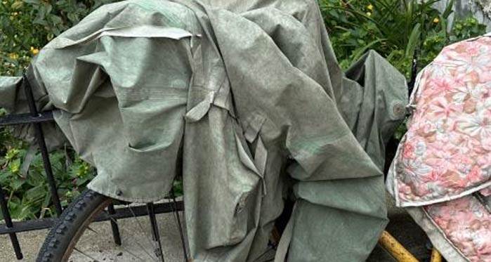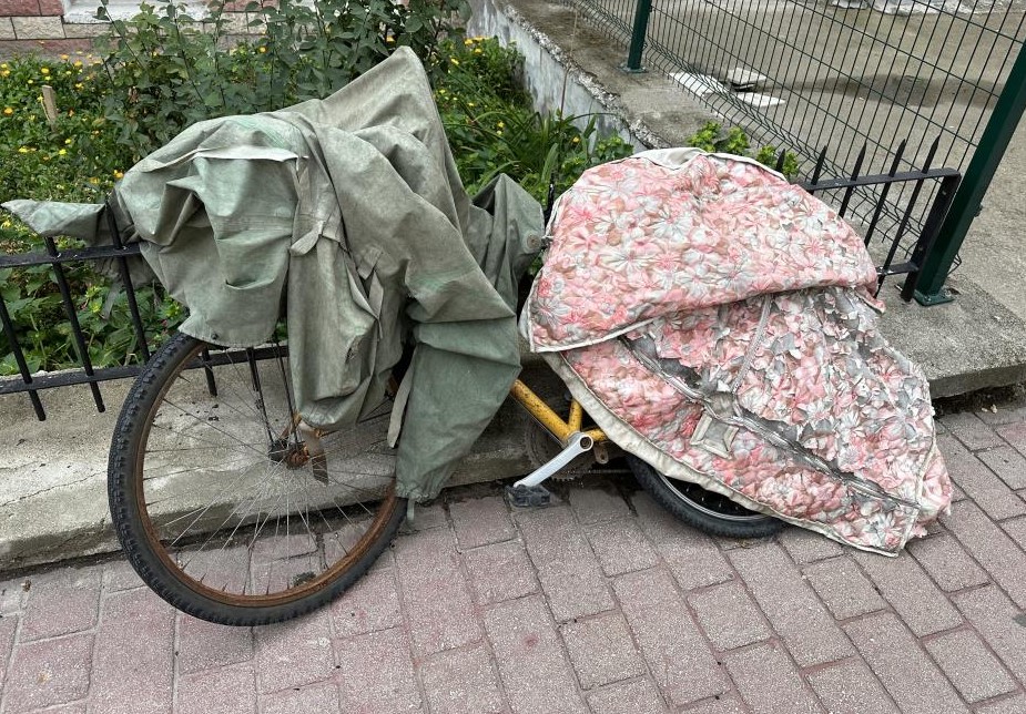 Osmangazi mahallesi Çetinay sokakta bisikletini site girişine bağlayan bir vatandaş, bisikletinin üzerine mont ve palto serdi. Üzeri kışlık montlarla kapatılan bisiklet görenlerin dikkatini çekti.