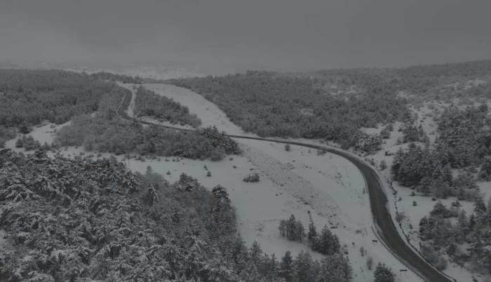 Tepebaşı ilçesi kırsal Yarımca Mahallesi’ndeki Bozdağ’a yağan yoğun kar havadan dron ile görüntülendi.