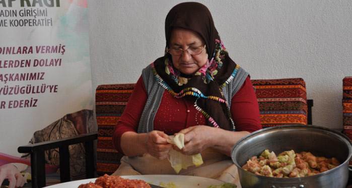 Eskişehir’in Sivrihisar ilçesindeki üretici kadınlar tarafından hazırlanan ve el yapımı güveç yoğurtla birlikte servis edilen coğrafi tescilli özel kelem dolmasına yoğun talep gösteriliyor.
