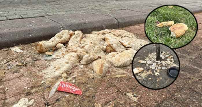 Eskişehir'de sokak hayvanlarını beslemek için gelişigüzel bir şekilde yere atılan ekmekler kötü bir görüntüye sebep olurken, görenlere ‘pes' dedirtti.
