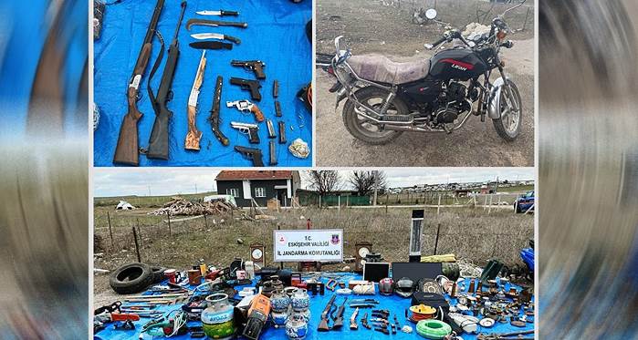 Eskişehir’de jandarma ekiplerince gerçekleştirilen 6 farklı operasyonda 13 şahsa işlem yapılırken çok sayıda silah, mermi, bir miktar uyuşturucu madde ve tarihi eser niteliğinde objeler ele geçirildi.