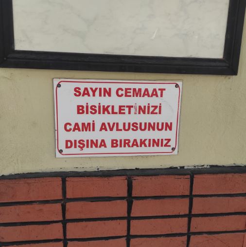 Eskişehir’de bir caminin duvarına yazılan yazı, bisiklet sorununun çözümü için ilginç bir yöntem oldu.