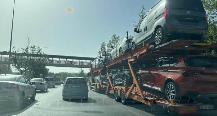 Alınan bilgiye göre, Ertuğrulgazi Mahallesi yakınlarından geçen çevre yolunda sıfır araçları taşıyan 34 GH 6475 plakalı tır, önünde seyreden bir otomobile çarptı.