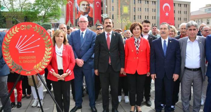 Düzenlenen törene Eskişehir Büyükşehir Belediye Başkanı Ayşe Ünlüce, Odunpazarı Belediye Başkanı Kazım Kurt, Tepebaşı Belediye Başkanı Ahmet Ataç, CHP İl Başkanı Talat Yalaz, partililer ve vatandaşlar katıldı. Çelenk bırakılmasının ardından konuşan İl Başkanı Yalaz, “Bugün, 23 Nisan’ın 104. yıl dönümünde, Cumhuriyet Halk Partisi olarak, Büyük Önderimiz Mustafa Kemal Atatürk’ün gösterdiği yolda emin adımlarla yürümeye devam ediyoruz.  31 Mart Yerel Seçimlerinden halkın büyük desteği ve teveccühüyle Türkiye’nin birinci partisi olarak çıkan partimiz, üstlendiği büyük sorumluluğun gereklerini yerel yönetimleriyle her kentte, partimizin her kademesiyle Türkiye’nin her bir köşesinde kararlılıkla yerine getirecektir. Bizlere güvenen milletimize söz veriyoruz, kuruluş ve kurtuluşun partisi Cumhuriyet Halk Partisi, Türkiye siyaseti için yeni bir dönemin başladığı bu yeni dönemde, ulusal egemenliğin ve halk iradesinin tartışmasız biçimde tecelli ettiği ve korunduğu düzeni kurma ve koruma görevini mutlaka yerine getirecektir. Biliyoruz ki, Cumhuriyetimiz kimsesizlerin kimsesidir. Meclisimiz milletin meclisidir. Ülkemiz gençlere emanettir. 23 Nisan Ulusal Egemenlik ve Çocuk Bayramımızı coşkuyla kutluyor, kurucumuz Büyük Önder Mustafa Kemal Atatürk ve mücadele arkadaşlarına; Cumhuriyetimizin ve ülkemizin dününü, bugünlerini ve yarınlarını var eden kurucu iradeye şükranlarımızı sunuyoruz” dedi.