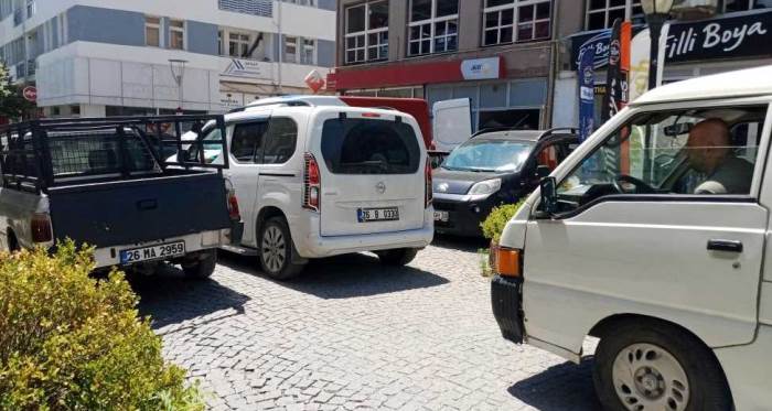 Eskişehir'de Reşadiye Esnafı Sokak'ta bugün öğle saatlerinde yaşanan olayda, park yeri bulamayan duyarsız bir sürücü, aracını yolun ortasına park ederek trafiğin felç olmasına neden oldu.