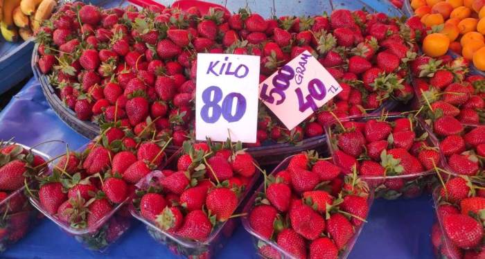 Yaz aylarının vazgeçilmezi çilek, tezgahlardaki yerini aldı. Hem lezzeti hem de faydalarıyla oldukça tercih edilen çileğin kilosu şu an 80 TL'den satılıyor.