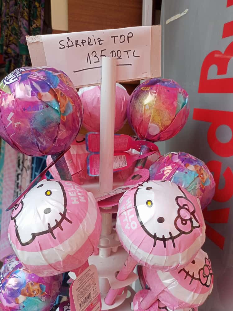 Eskişehir’in en yoğun alışveriş noktalarından Hamamyolu Caddesi’nde tezgâhlarda çocuklara yönelik satılan sürpriz toplar dikkat çekiyor. İçinde farklı oyuncakların bulunduğu bu ürünler 135 liradan satışa sunuldu.