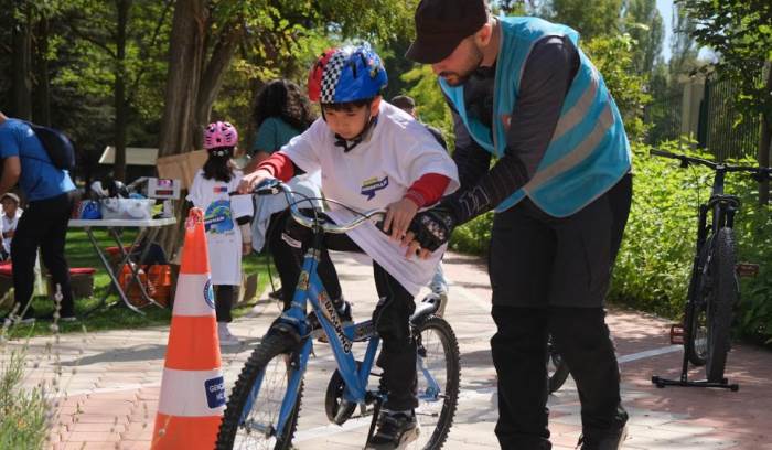 Aktif Yaşam Parkı’nda gerçekleştirilen etkinlikte çocuklara bisikletin bölümleri ve güvenlik ekipmanları tanıtıldı. Çocuklar, uzman eğitmenler eşliğinde temel sürüş eğitim parkurunda deneme sürüşleri yaparak hem eğlendi hem de güvenli bisiklet kullanımı konusunda bilgi sahibi oldu. Çocukların bisiklet sürerken yaşadığı mutluluk ve heyecan, etkinliğe renk kattı.