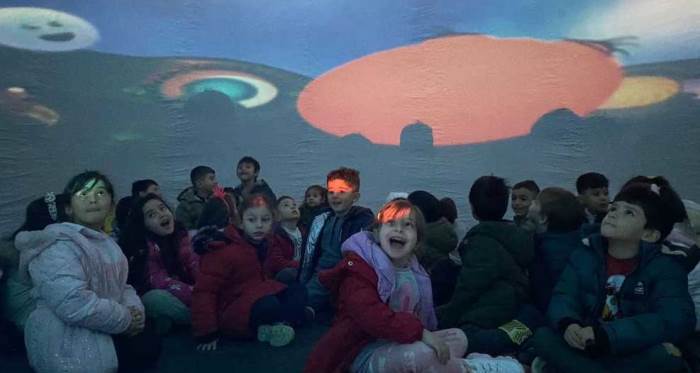 Türk Dünyası Kültür Evi'nde gerçekleşen Planetaryum (Uzay Çadırı) etkinliği, Çifteler İlçesi'nden gelen 3-13 yaş aralığındaki çocuklara görsel bir şölen sundu.