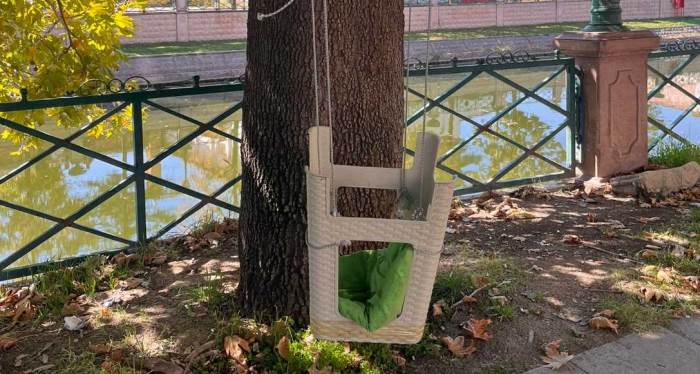 Eskişehir'de Porsuk kenarında çocukların vakit geçirebileceği bir park bulunmaması üzerine duyarlı bir vatandaş, çocukların oyun oynayabilmesi için ilginç bir çözüm geliştirdi. Ağaç dallarına iplerle bağladığı bir tabureyi salıncağa dönüştüren vatandaş, çocuklara küçük de olsa bir oyun alanı yarattı. Çocukların bu salıncakta keyifli vakit geçirdiği gözlenirken, gören vatandaşlara ise tebessüm ettirdi.