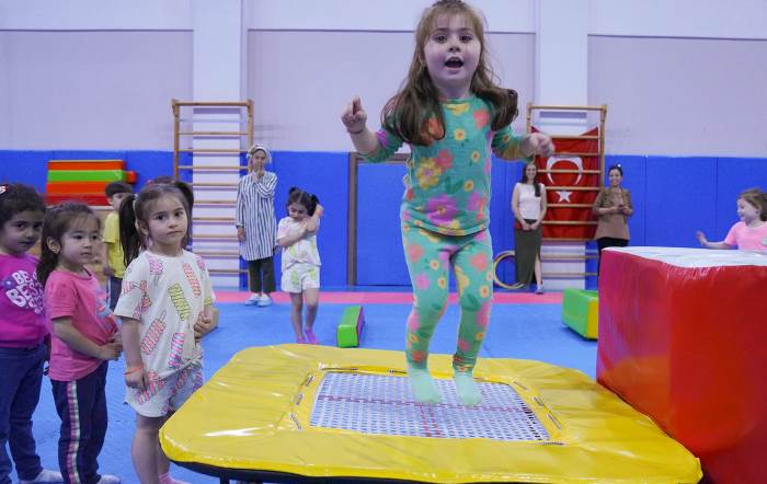 Eskişehir Tepebaşı Belediyesi Yunus Emre Spor Tesisleri, Anaokulu Jimnastik Projesi ile çocukların jimnastik ile tanışmalarına ev sahipliği yapıyor.