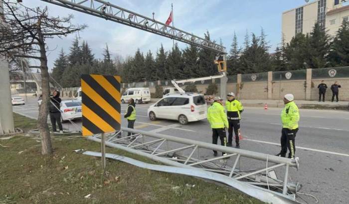 Eskişehir'de damperi açık kalan tırın çarptığı Plaka Tanıma Sistemi (PTS) direği yola devrildi. Kazada şans eseri kimse yaralanmazken, 45 yaşındaki tır sürücüsü işlemleri için emniyete götürüldü.