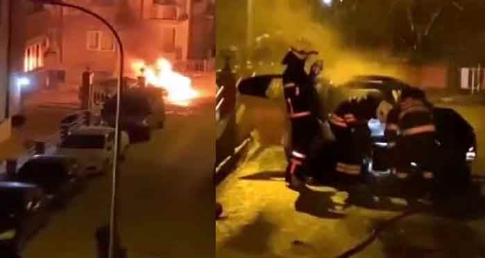 Eskişehir'de park edildiği sokakta bir anda alev alıp yanmaya başlayan otomobil mahalle sakinlerine dehşeti yaşattı