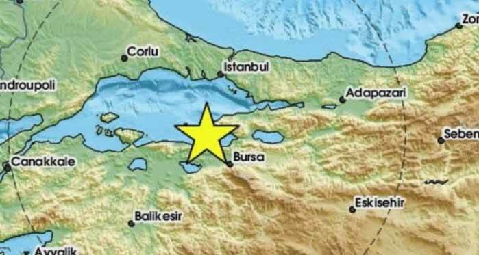 Kandilli Rasathanesi'nin verilerine göre, Mudanya Kumkaya merkezli meydana gelen depremin büyüklüğü 4.9 olarak belirlendi.