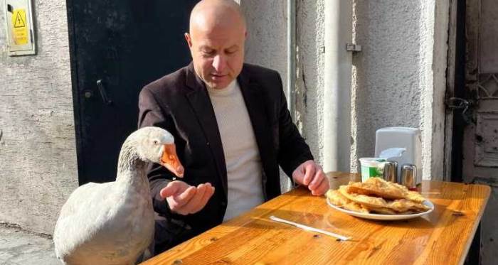 Kocaeli’nde yaşayan ve 12 yıldır 'Cango' isimli kazını biran bile yanından ayırmayan Yılmaz Evcenler, Eskişehir’i gezmeye geldi. Kentin turistik yerlerini boynunda papyon takılı kazı ile birlikte gezen Evcenler, insanların yoğun ilgisiyle karşılaştı. Yılmaz Evcenler kazı Cango ile birlikte Çi börek yedi. Çi böreği oldukça beğenen Evcenler ve Cango vatandaşlarla fotoğraf çekindikten sonra şehir turuna devam etti.