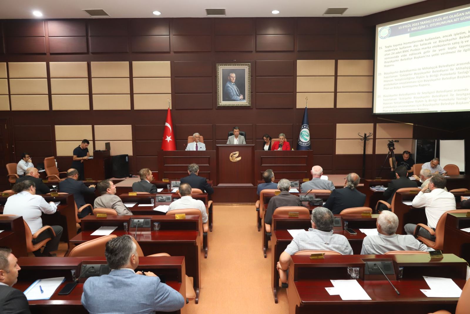 Eskişehir Büyükşehir Belediye Meclisi Eylül ayı toplantılarının 2’ncisi Hasan Ünal başkanlığında gerçekleştirildi. 40 gündem maddesinin görüşüldüğü toplantıda, 3, 8, 16, 17, 25, 26, 31, 34, 35, 37 ve 40’ıncı maddeler oy çokluğuyla kabul edilirken, geri kalan maddeler oy birliğiyle meclisten geçti.