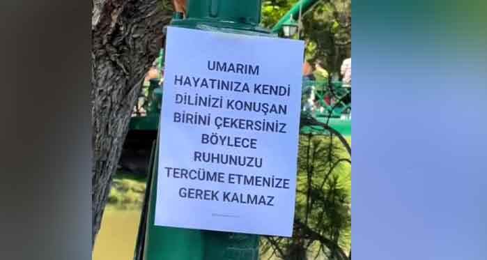 Eskişehir'de direğe asılan yazı sosyal medyayı salladı