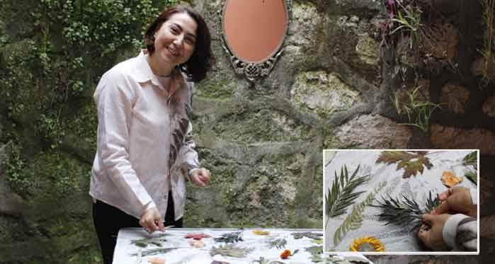 Sanatçısı Nagihan Sarımeşe, gerçekleştirdiği ekolojik baskı ürünlerinin yapım sürecini ve kullandığı malzemeleri anlatarak, “Bu sanat ile doğanın imzasını alıyoruz” dedi.