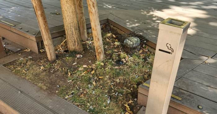 Eskişehir'in Yediler Parkı’nda sigara izmaritleri için yerleştirilen ayaklı küllükler, ne yazık ki çoğu zaman göz ardı ediliyor.