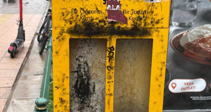 Tepebaşı Belediyesi tarafından çevre temizliğine dikkat çekmek amacıyla kentin farklı noktalarına konumlandırılan “Bence Eskişehir” temalı izmarit kutuları, duyarsız vatandaşların zararına uğradı. Sigara izmaritlerinin gelişi güzel yere atılmasının önüne geçmek için yerleştirilen kutuların bir kısmının kirletildiği, üzerlerinin karalandığı ve kullanılamaz hale geldiği görüldü.