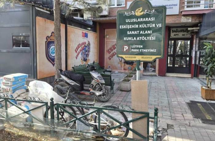 Büyükşehir Belediyesi'ne ait Ulusalararası Eskişehir Kültür ve Sanat Alanı Kukla Atölyesi önündeki park uyarı levhası dikkati çekiyor. Oldukça büyük boyuttaki 'Park etmeyiniz' tabelasına rağmen bazı duyarsız sürücüler aldırış etmeyerek araçlarını park ediyor. Hem motosiklet hem de bisikletin tabelanın yanına park edilmesi ortaya kötü bir görüntü çıkartırken bir yandan ise bu davranış 'pes' dedirtiyor.
